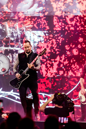 Dan was er natuurlijk nog de band waar iedereen op aan het wachten was; Volbeat! Met hun typische, maar nog steeds even geweldige, lichtschermen decor zetten ze de zaal meteen in vuur en vlam. Het blijft mij telkens verbazen hoe goed deze band live klinkt, zelfs nu Michael Poulsen een beetje met de sniffels zat, klonk hij nog steeds geweldig goed. Hij gaf zelf aan af en toe niet helemaal optimaal te klinken en ik heb dit ook wel een keer of twee opgemerkt, maar dan nog... Hij komt daar zo mee weg en als je er niet op let merk je dit ook absoluut niet. Verder is hij ook een geweldig wholesome frontman. Er stond namelijk een dame op de tweede rij, waarvan het op deze dag haar achttiende verjaardag was. Michael had er niet beter op gevonden om een van zijn polsbandjes naar haar te gooien met de woorden āconsider this your birthday presentā, lief toch?